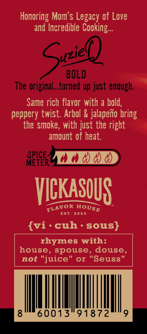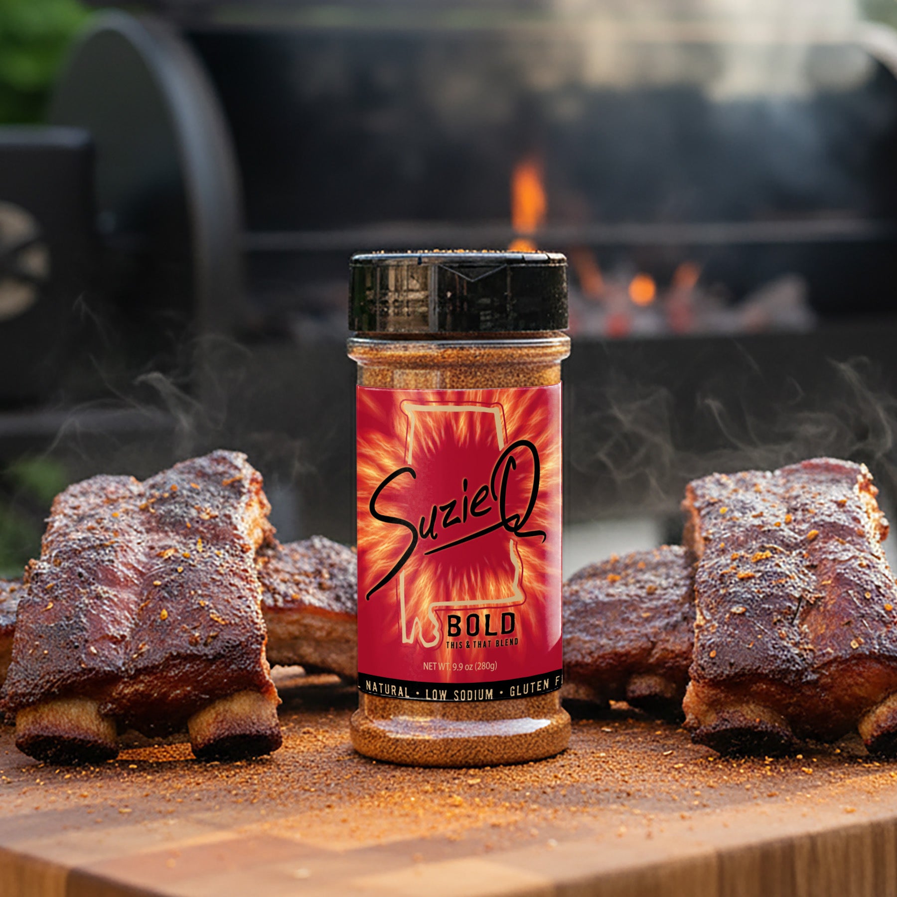 Suzie Q BOLD takes everything you love about the Original This and That blend and kicks it up just enough to turn heads — not burn tongues. With the same savory backbone of brown sugar, garlic, chipotle, and sea salt, this version adds a smooth, flavorful heat from arbol and jalapeño peppers. It’s not hot, just bold — the kind of seasoning that makes grilled meats, roasted veggies, and even popcorn unforgettable.